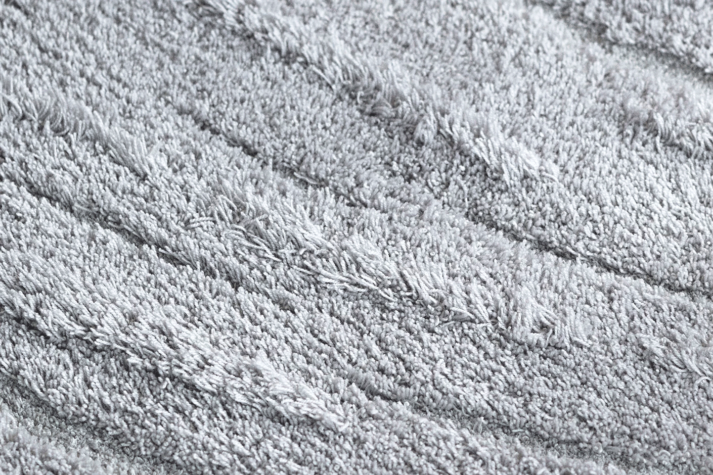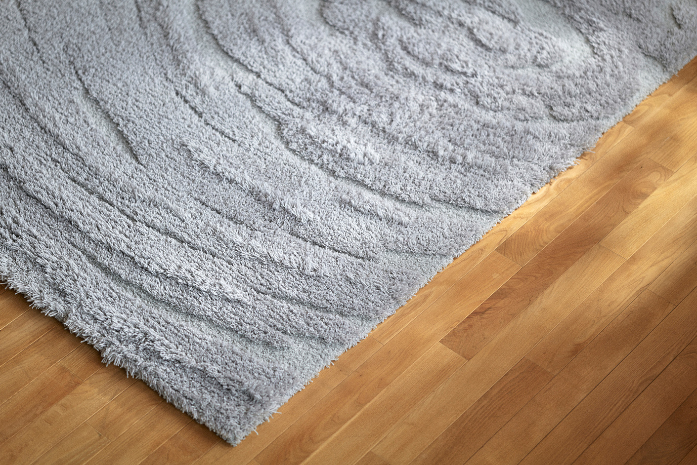 水面に広がる、幾重もの波紋を表現したじゅうたんです。ウールシャギーを素材とする立体的な仕上げとテクスチャは、素朴な肌触りと佇まいで、空間に柔らかな自然の情景を取り込みます。