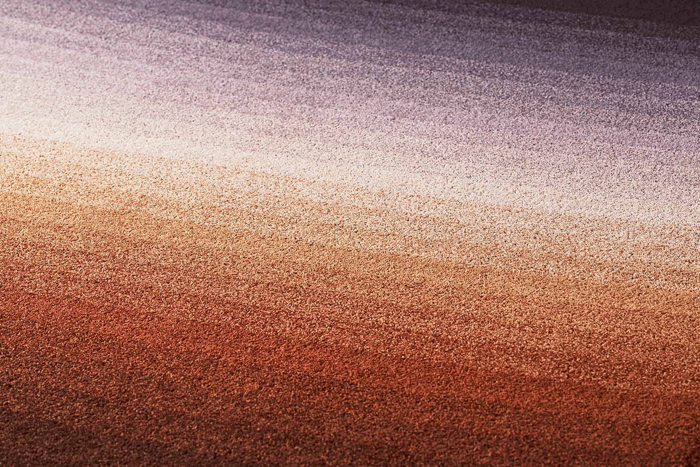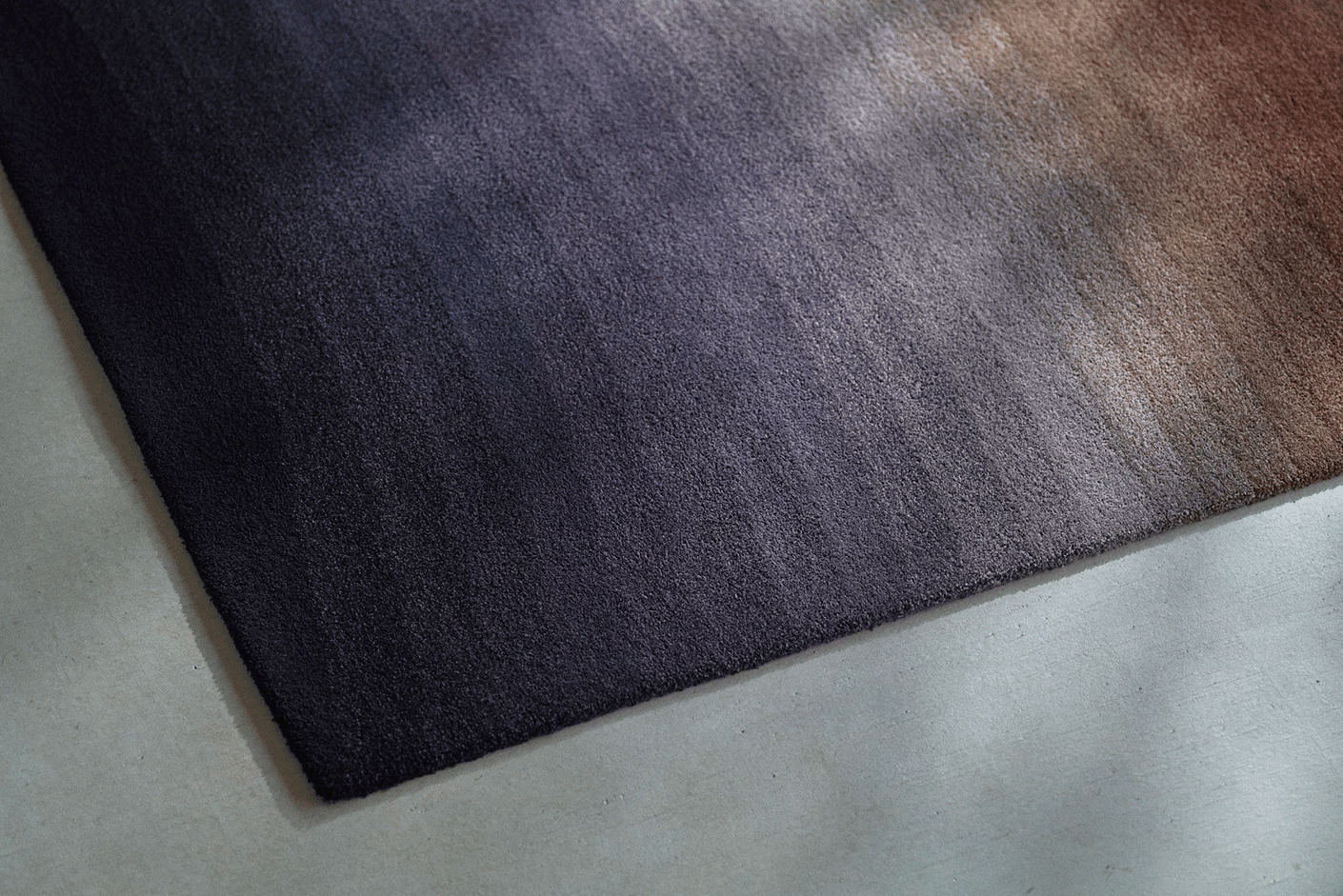 日常の中で、ふとした瞬間に心惹かれる窓辺の風景。一日の空の移ろいと共に、窓越しに心地よく射し込む光を表現したじゅうたんです。毛足の短いフリーズウールによるさっぱりとした素材感と風合いは、空間とインテリアに寄り添い、居心地の良さを演出します。