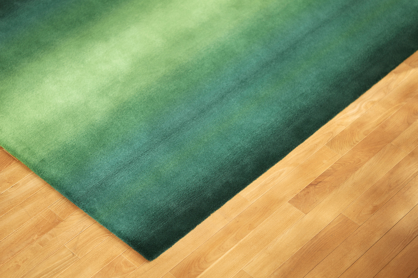 生き生きとした松林を、優しいそよ風が吹き抜け、緑を揺らす。その風景をグラデーションで表現したじゅうたんです。伸び伸びとした佇まいで、現代の暮らしに、穏やかな自然と空の情景を取り込みます。