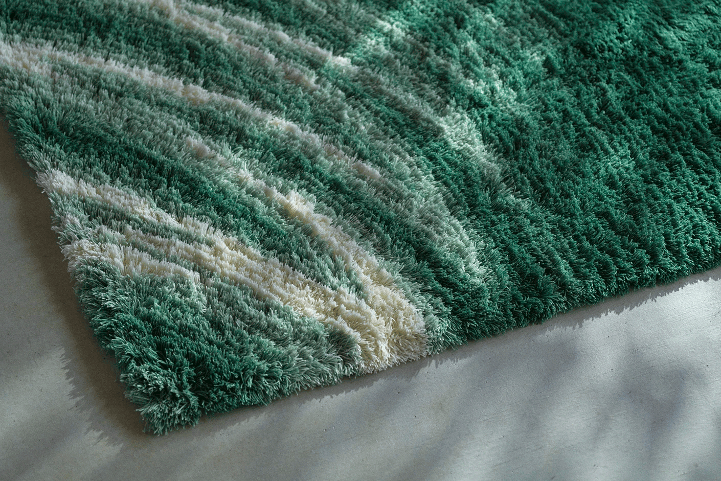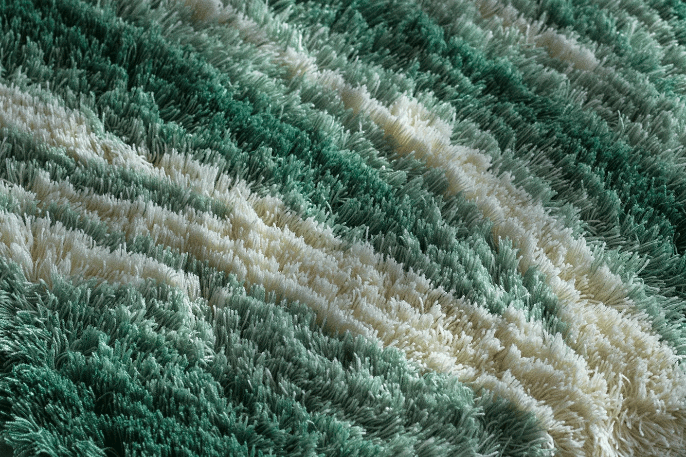 流れる波の景色を、様々なグラデーションで表現したじゅうたんです。ニュージーランド産光沢種羊毛をふんだんに使用した、素材そのものの素朴な風合いや佇まいが、空間に寄り添います。(通常製品と比較し毛足が長く、遊び毛が出やすい傾向があります)